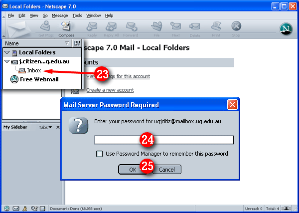 | 23)Click the 'Inbox' under the account you have just created. A password box will appear. |