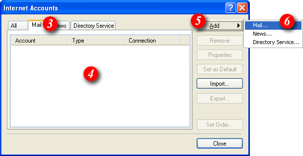 a list of accounts that have already been setup in Outlook Express. |